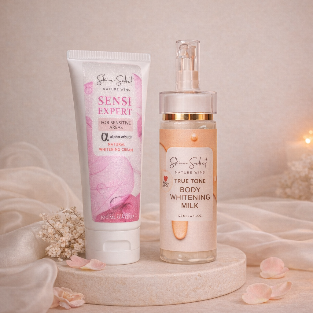 Bundle includes : sensi expert whitening cream (100ml) + true tone body whitening milk (120ml)